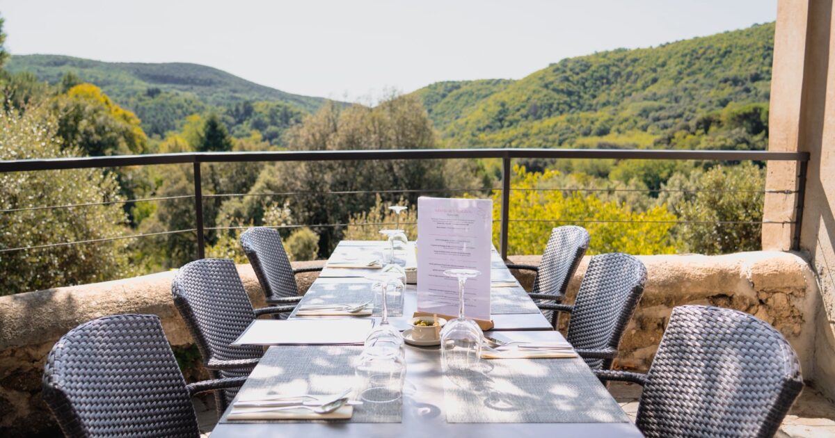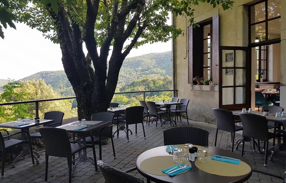 Situé dans le Parc National des Cévennes, sa terrasse extérieure offre une vue exceptionnelle sur un océan de nature et de biodiversité. La carte du restaurant signe l’équilibre d’une cuisine entre tradition et modernité.