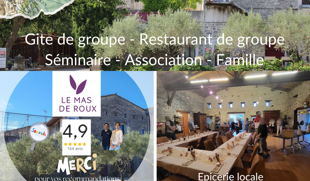 Elle joue également un rôle central dans l’accueil de groupes au Mas de Roux. Les produits proposés viennent enrichir les séjours en gîte de groupe, que ce soit pour des repas conviviaux, des apéritifs entre amis, des petits-déjeuners ou des moments gourmands partagés lors de cousinades et de retrouvailles familiales.