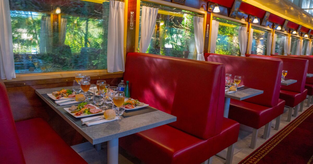 Déjeunez dans la prestigieuse voiture restaurant en admirant les magnifiques paysages cévenols.